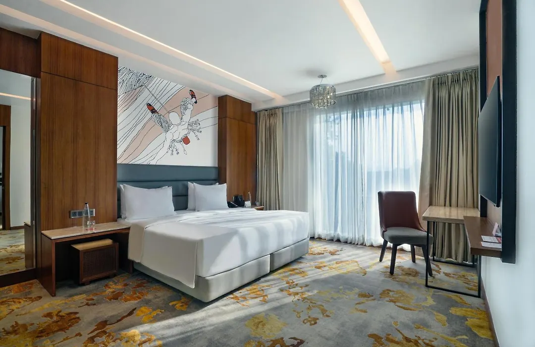 There are 126 air-conditioned rooms featuring a flat-screen TV with satellite channels as well as a mini fridge bar, tea and coffee-making facilities for self-catering. The bedrooms come with pillowtop beds.